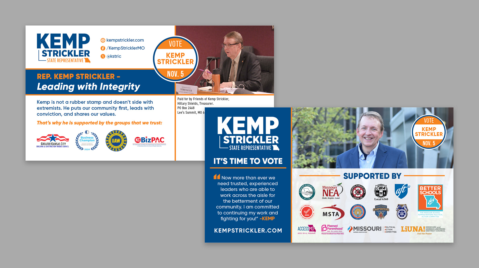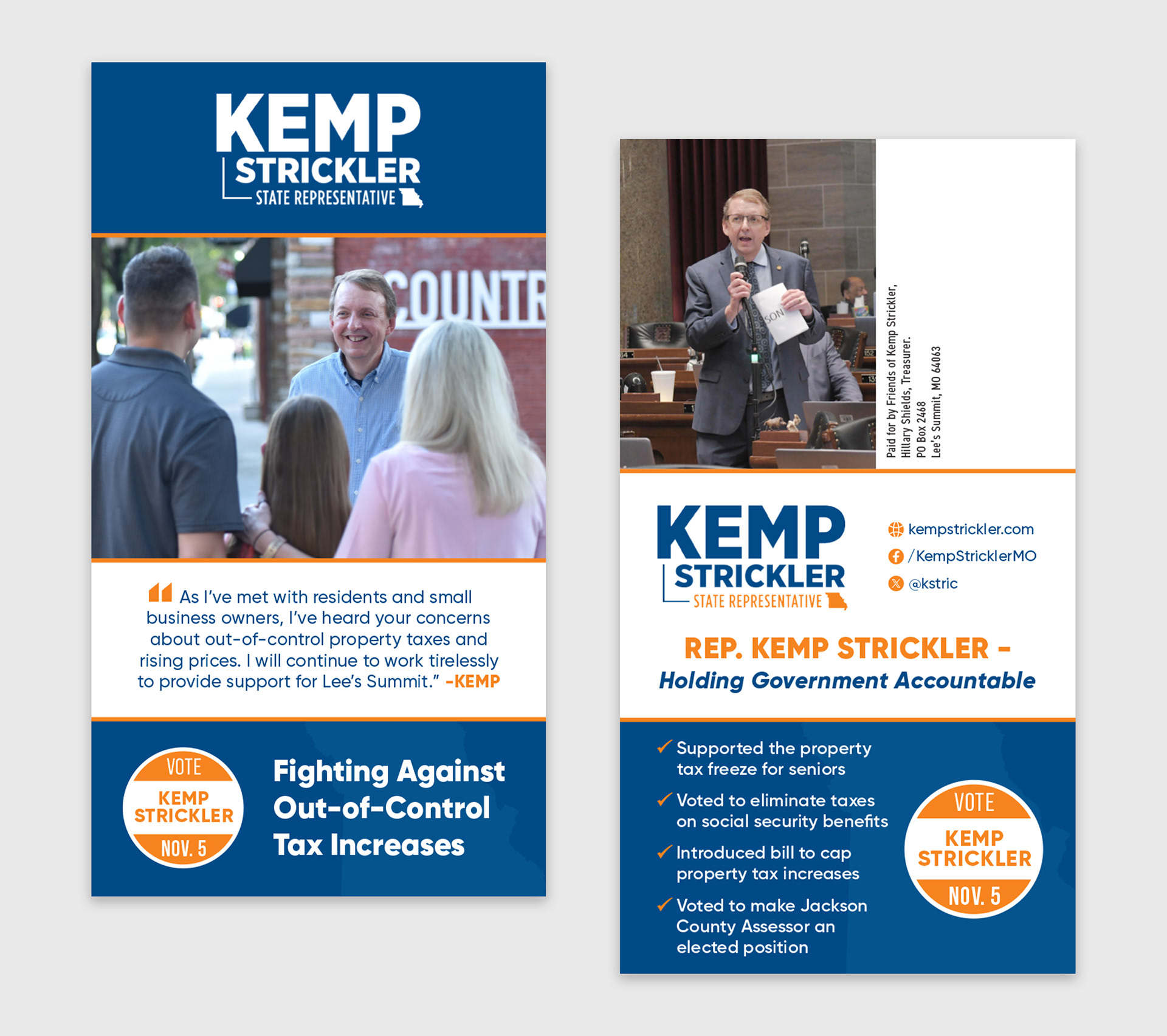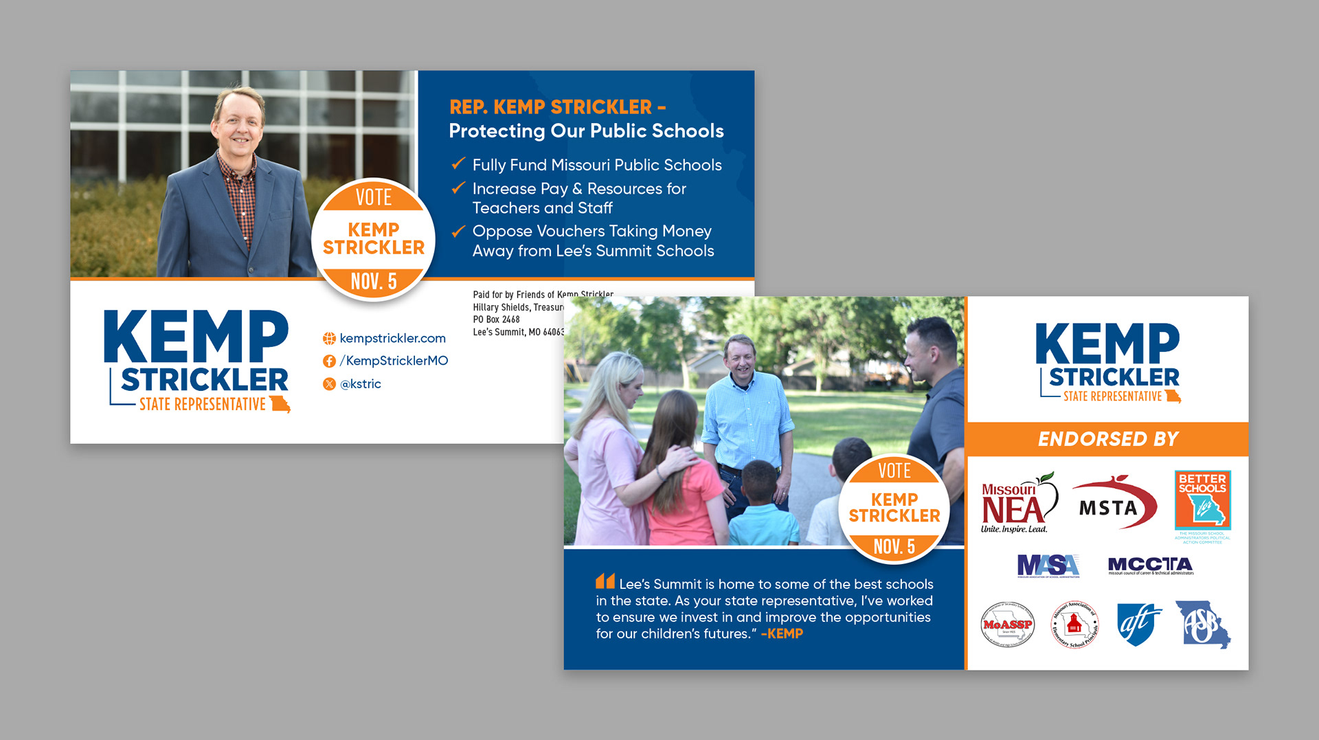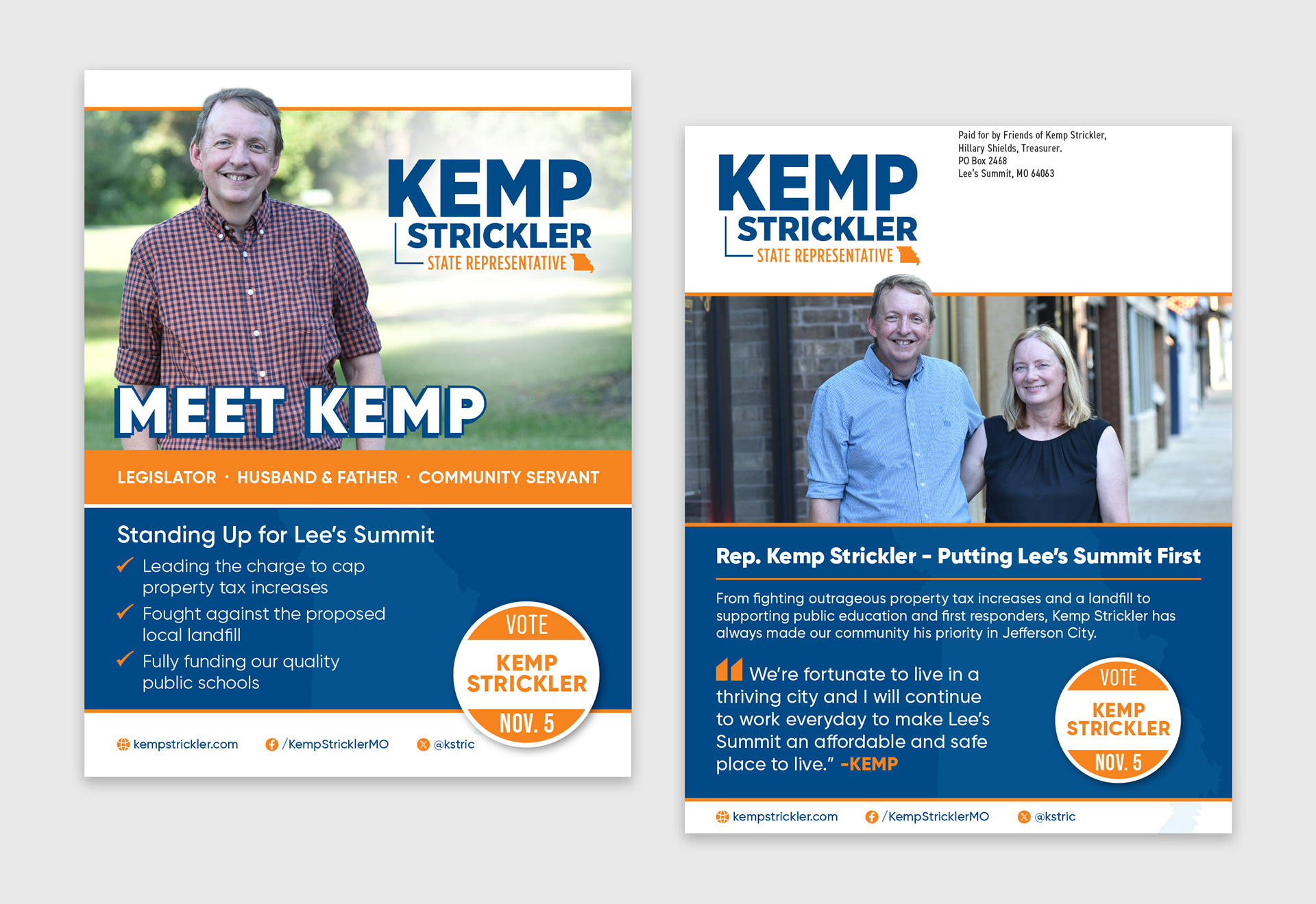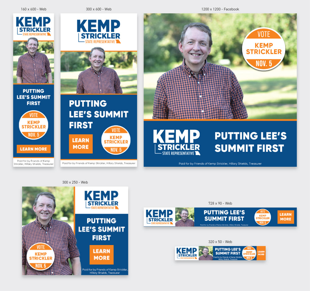This is a small collection of some print and digital ads done for Kemp Strickler's 2024 political race.