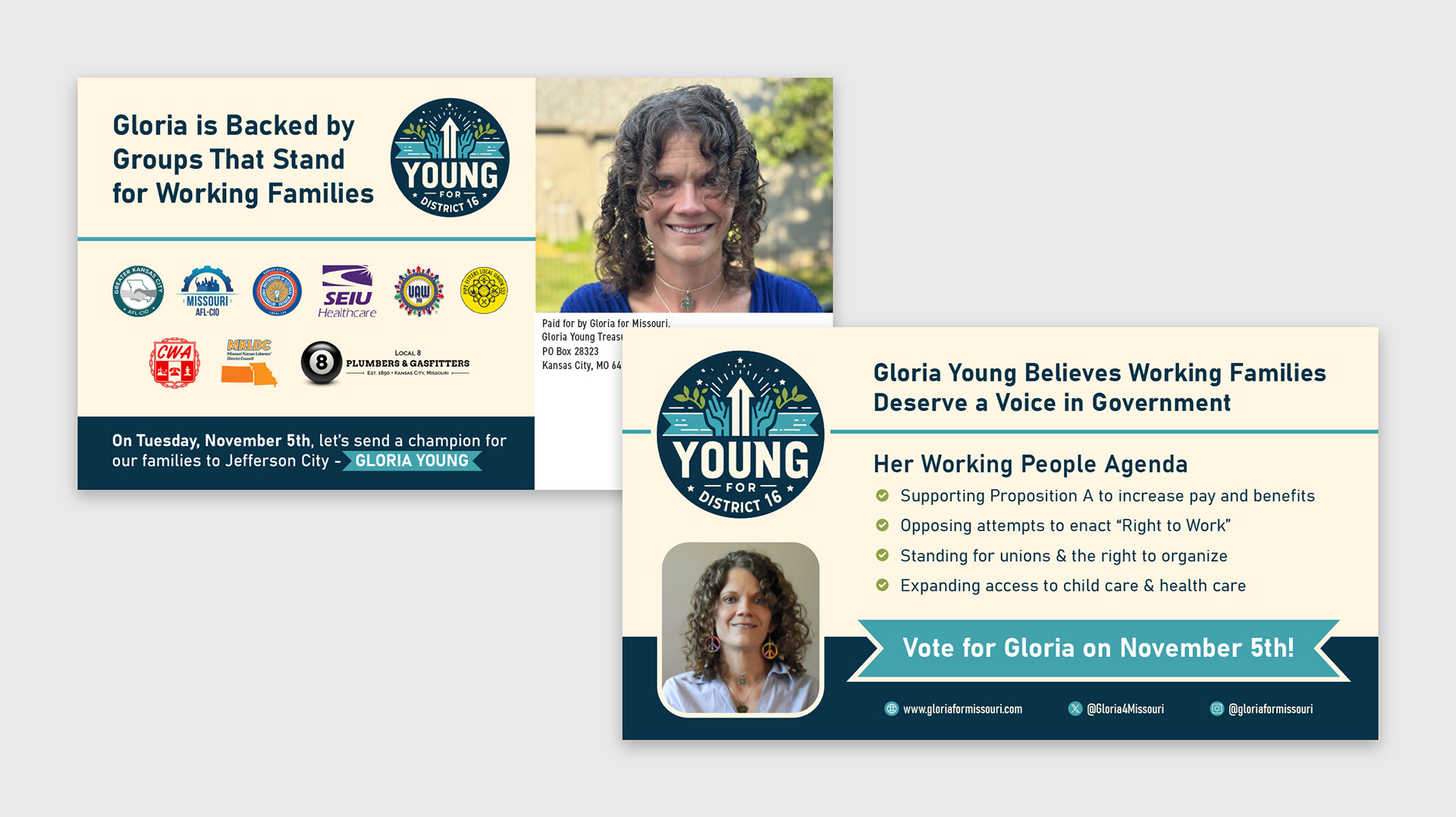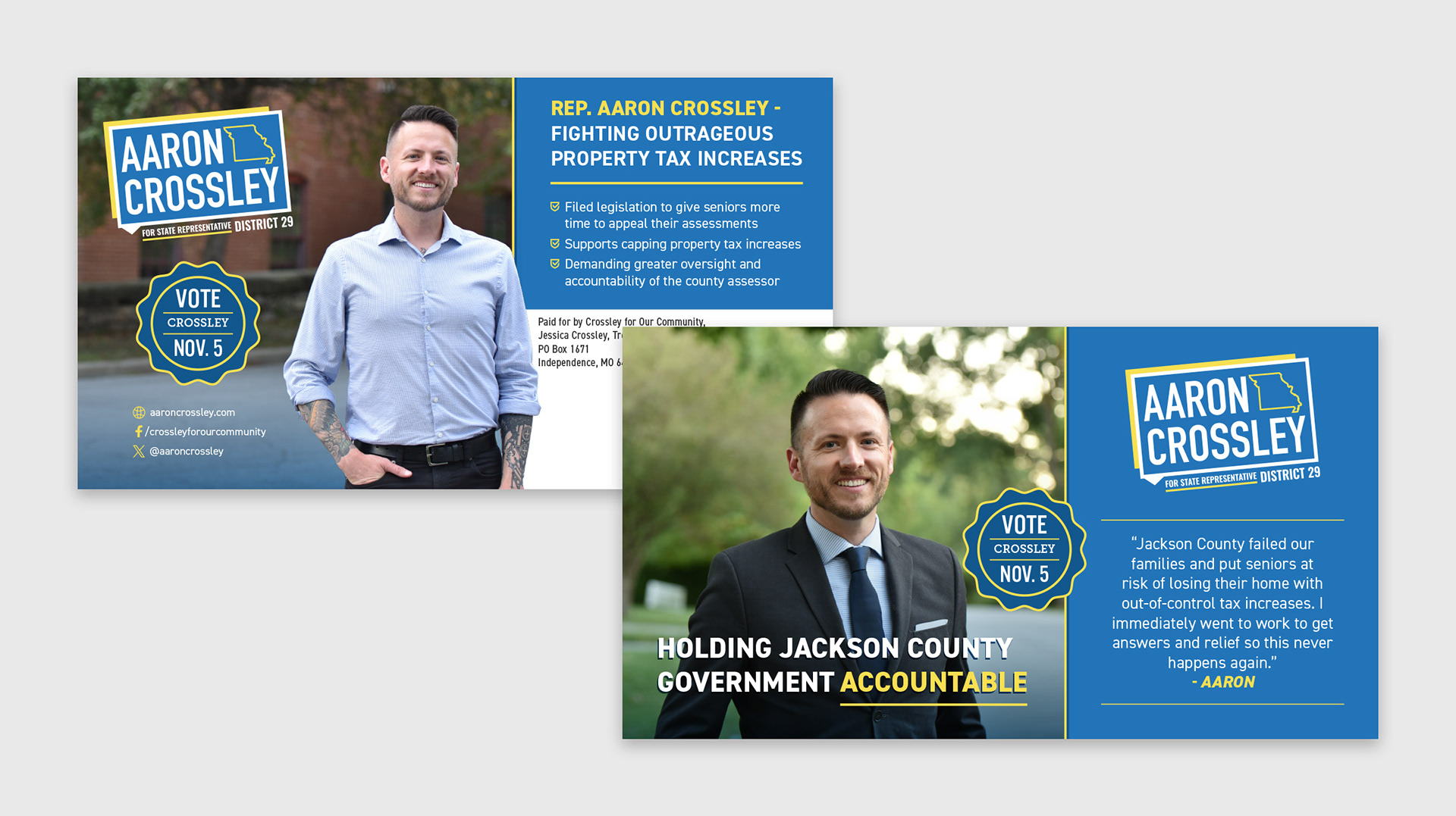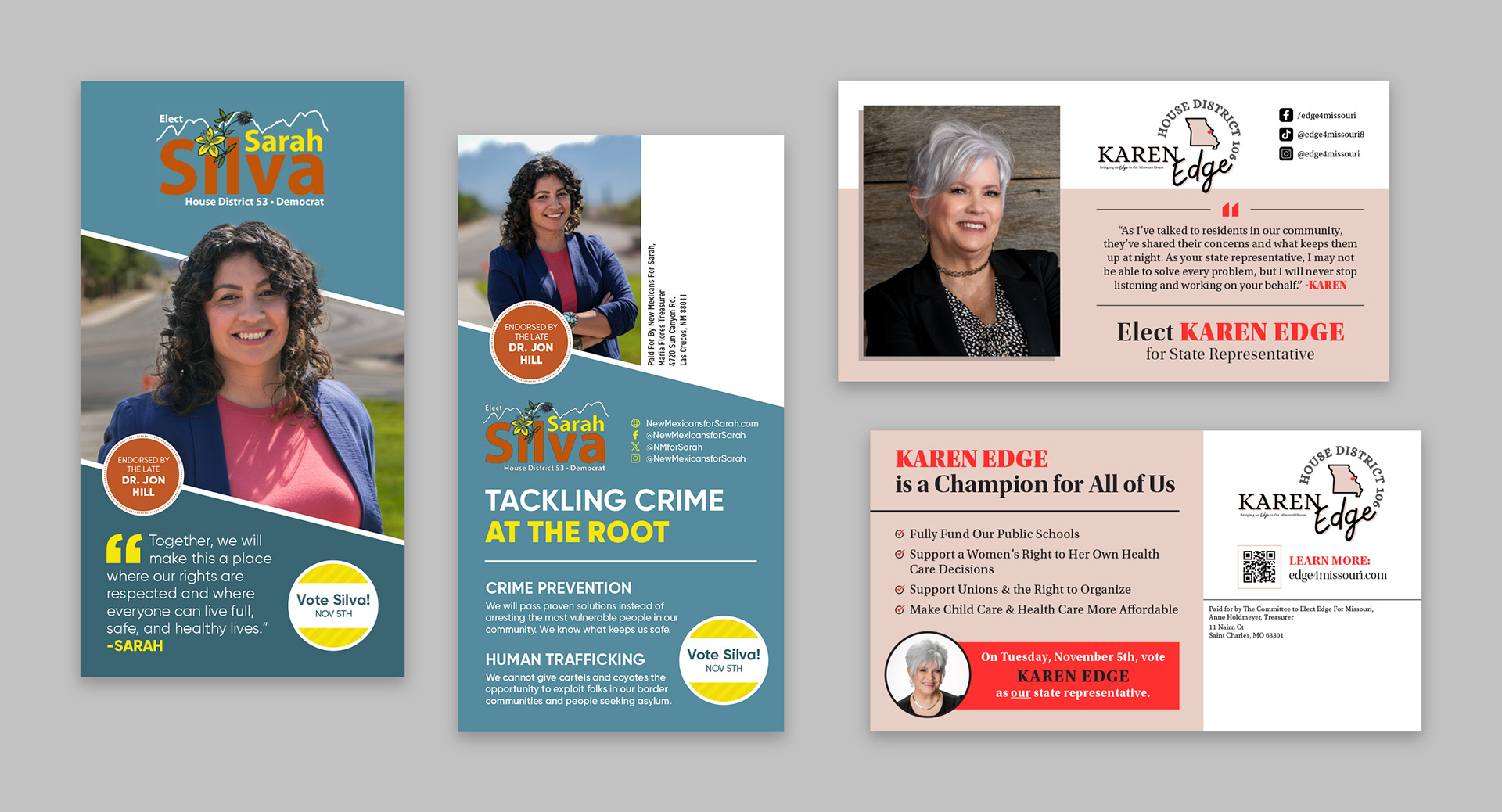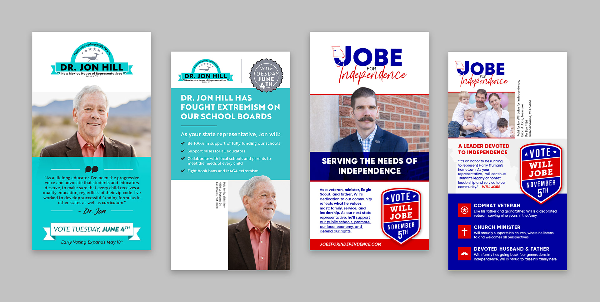 This is a small sample of some positive political mail I created during my time at TJP Strategies.